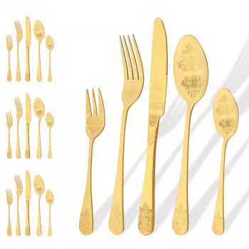 Luxury 20-Piece Vintage Stainless Steel Cutlery Set – Silver Carved Flatware